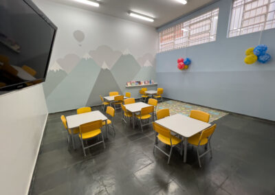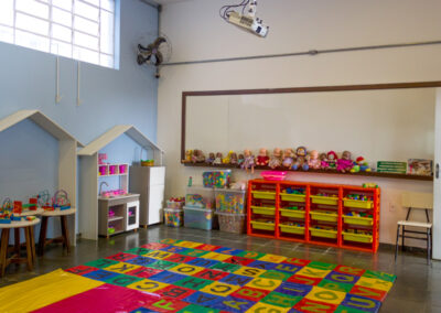 Nossas salas de aula são lúdicas e aconchegantes, projetadas para incentivar o aprendizado através da criatividade e da interação. Contamos com parquinhos, salas de psicomotricidade e música, além de espaços monitorados, garantindo a segurança e o bem-estar das crianças em todos os momentos.
